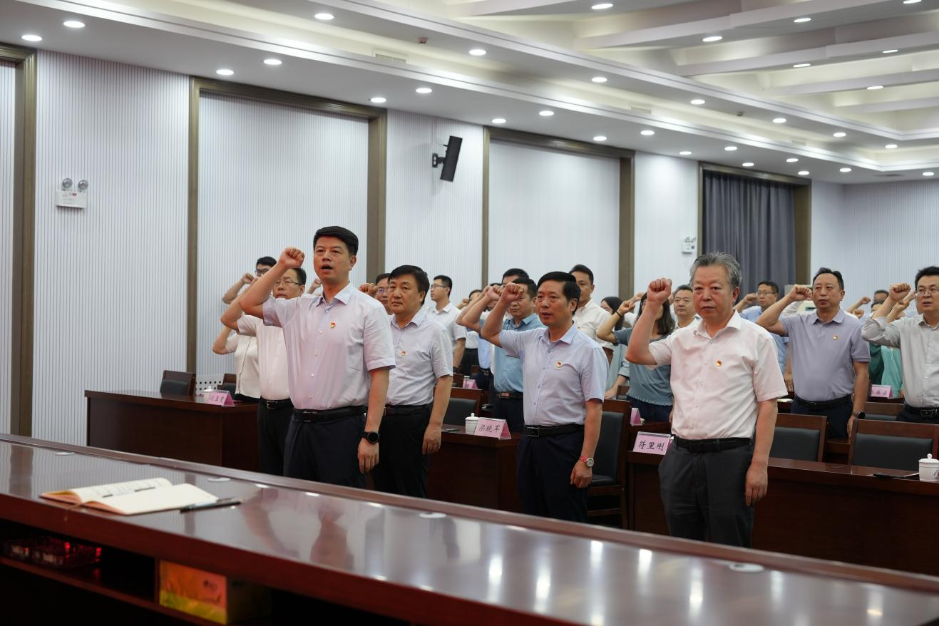 國歌嘹亮,誓言鏗鏘。大會在雄壯的國歌聲中拉開帷幕,全體參會人員莊嚴肅立,齊唱國歌。隨后在黃巍同志的領(lǐng)誓下,全體黨員面向黨旗,高舉右拳,莊嚴宣誓?,F(xiàn)場鏗鏘有力的宣誓聲,既傳達出身為共產(chǎn)黨員的自豪感和使命感,也表明了大家堅定不移聽黨話、跟黨走的決心和信念。