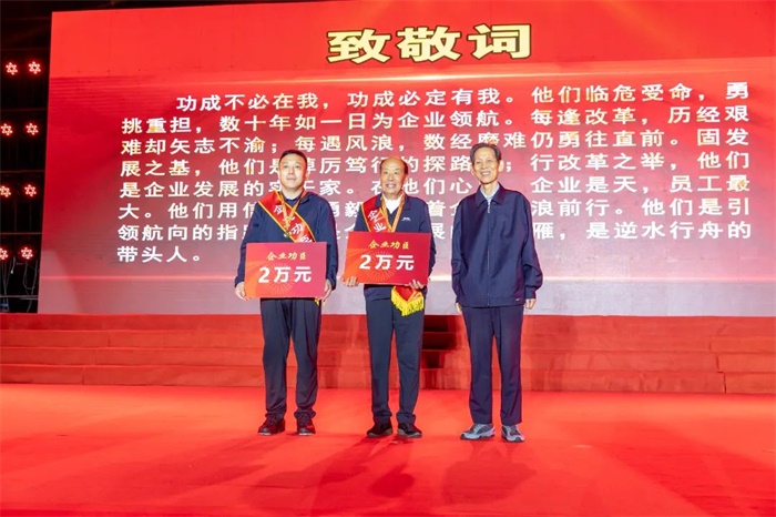 慶祝大會(huì)對在企業(yè)改革和經(jīng)濟(jì)發(fā)展過程中涌現(xiàn)出來的企業(yè)功臣、企業(yè)勞模進(jìn)行了隆重表彰。