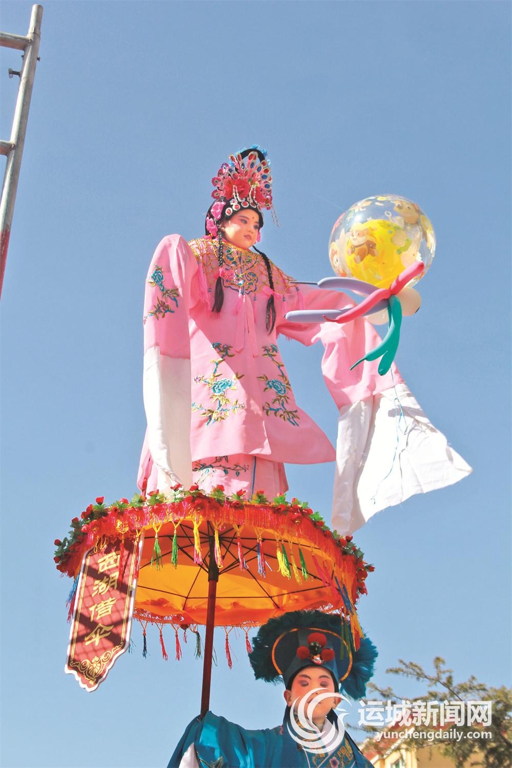 當(dāng)天,河津市僧樓鎮(zhèn)帶來(lái)的表演分為“河汾門(mén)下”“風(fēng)追大唐”“時(shí)代雄風(fēng)”“春和萬(wàn)象”4個(gè)篇章,通過(guò)原創(chuàng)古風(fēng)舞蹈、武術(shù)、高蹺斗舞、轉(zhuǎn)花燈等多種表現(xiàn)形式,將傳統(tǒng)文化與現(xiàn)代藝術(shù)巧妙融合;河津市小梁鄉(xiāng)不甘示弱,馬拉鼓車(chē)、炫酷摩托車(chē)隊(duì)表演、花車(chē)舞獅、紙馬旱船、打花鼓等社火節(jié)目輪番上演。其中,馬家莊抬閣驚艷亮相,數(shù)米高的架子上,身著彩服保持固定姿勢(shì)的兒童賣(mài)萌搞怪,惹得大家捧腹大笑。